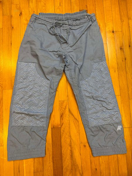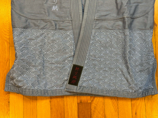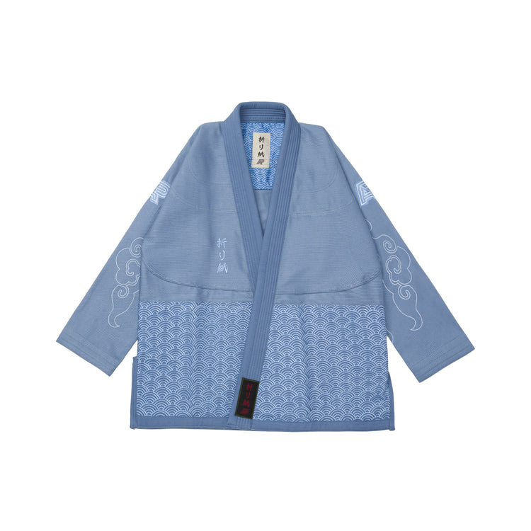 The Kimono top features many details from top to bottom. Starting with the inside yolk, you can see a repetitive water pattern that can also be seen on the skirt top and knee section of the pants. The water pattern also known as Wagara resembles our journey in jiu-jitsu that represents the unwavering determination of the art.