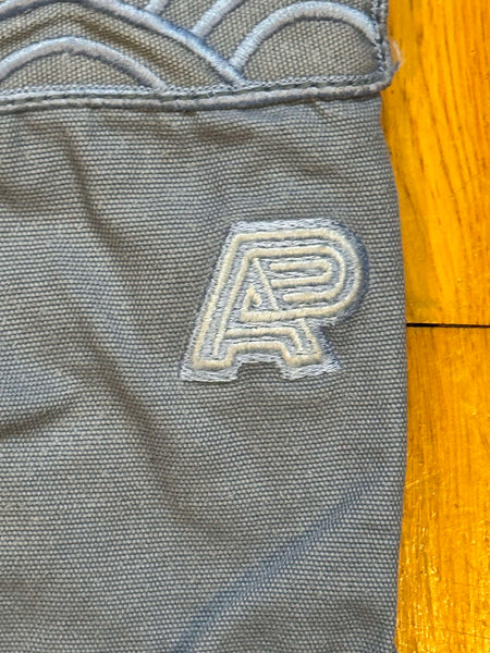 Measurements A: Jacket width sleeve to sleeve: 65.5" B: Jacket length shoulder to skirt: 29.75" C: Jacket width armpit to armpit: 26.75" D: Pants width at waist: 16.5" E: Pants length waist to ankle (back): 35.75" F: Pants length waist to ankle (front): 33.75" G: Pants length crotch to ankle: 25" H: Pants width across thigh: 12.5"