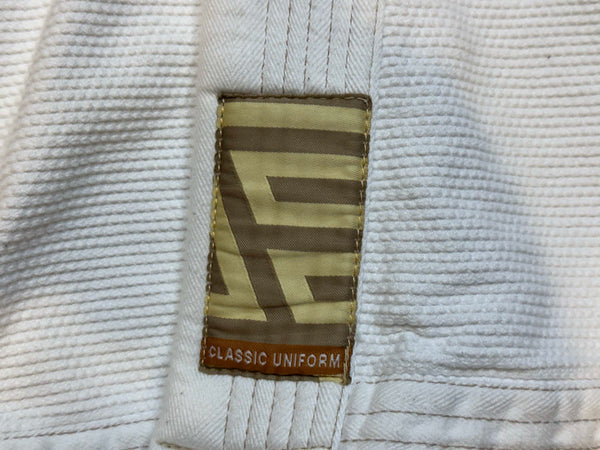 No frills. All Sport. The Herringbone Classic has become an iconic workwear style for all practitioners from novice to competitor. Its tried and true style has proven diligence over the years and continues to become a staple in everyone's rotation. With a rigid 450 gsm cotton pearl weave kimono top and 10 ounce cotton herringbone Novo pants that feature updated "mud, auburn and tan" (MAT) colored patches and embroidery located throughout the workwear piece.
