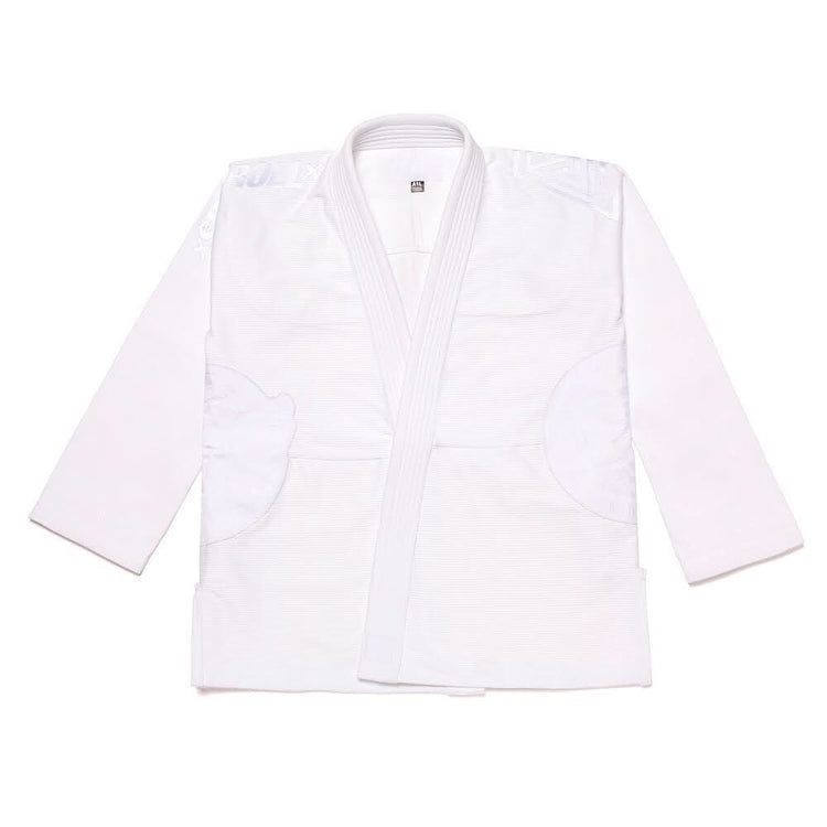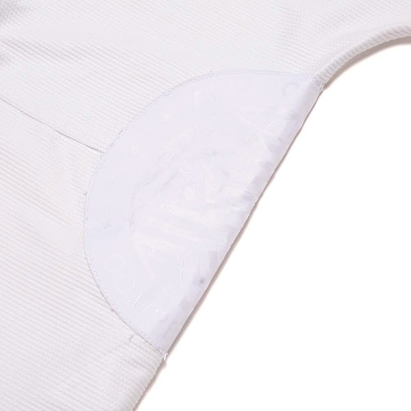 A&P and Shoyoroll are back together again with a special collection. The kimono top is made of 450 GSM pearl weave material and the pants are made of 10 oz. twill cotton. The AP Mark logo is embroidered on the left shoulder, while the right side is embroidered with Shoyoroll’s type mark. Each rib section also has A&P and Shoyoroll's competition woven logos. Additional details include a dual branding lapel & inside tag labels and a knapsack bag to complete the set.