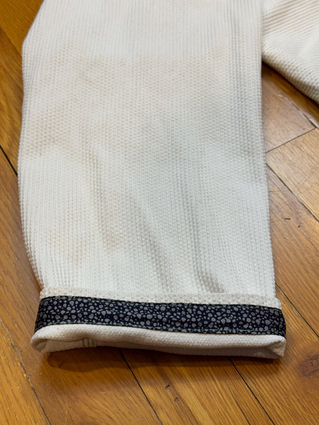 This particular gi is an extremely rare prototype — possibly the only one in existence — that was manufactured before the public release and has several key differences: