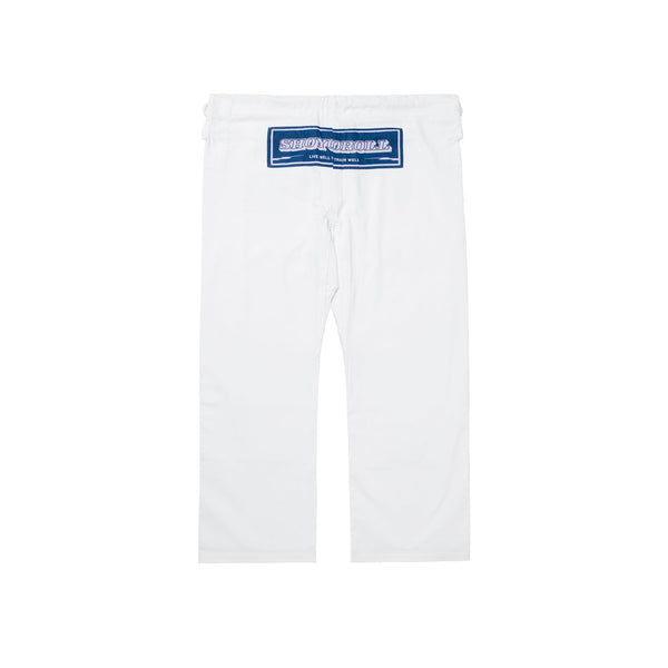 Release Info Top: 425G Pearl Weave Pants: 10oz Canvas Color: White, Blue