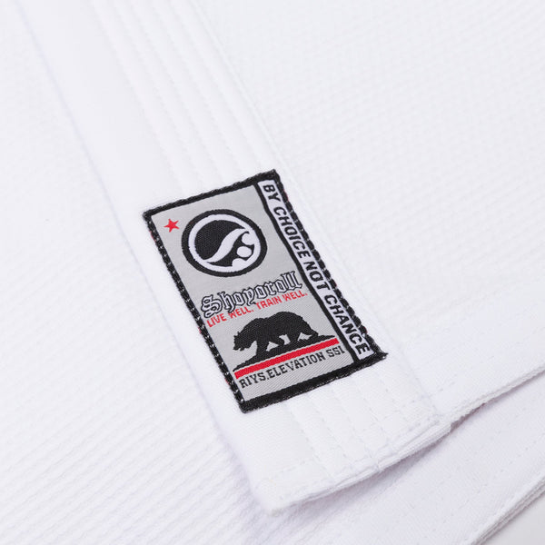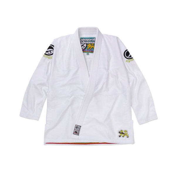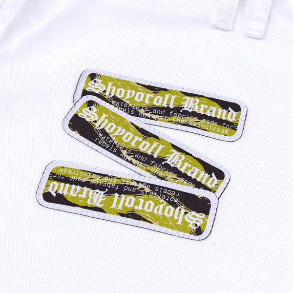 Condition Notes Lots of collectors like to have the three back patches professionally removed, and then re-applied elsewhere on the gi, especially in the jacket lapel position commonly found on the Shoyoroll Skies (Black Skies, Grey Skies, Clear Skies, etc.) series of kimonos. Since this gi is brand new, the patches can be repositioned professionally without damaging the gi or leaving marks behind.