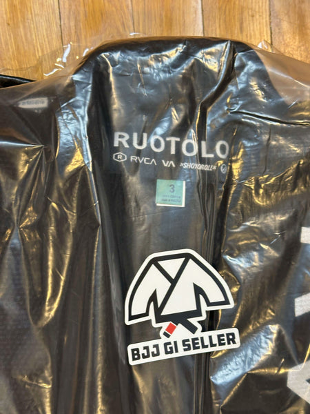 Item Description A limited-edition BJJ RVCA x Shoyoroll Gi designed by the future of Jiu-Jitsu twin brothers Tye and Kade Ruotolo. Expertly crafted with serious practitioners in mind, this exclusive RVCA kimono features 450 gram Pearl Weave Cotton top and 10 oz Canvas Cotton Pant.
