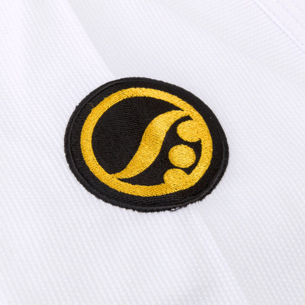 Constructed with a 400-gram pearl weave fabric, the jacket maintains the traditional fit and feel of a martial arts uniform, while strategically reducing weight to enhance functionality.